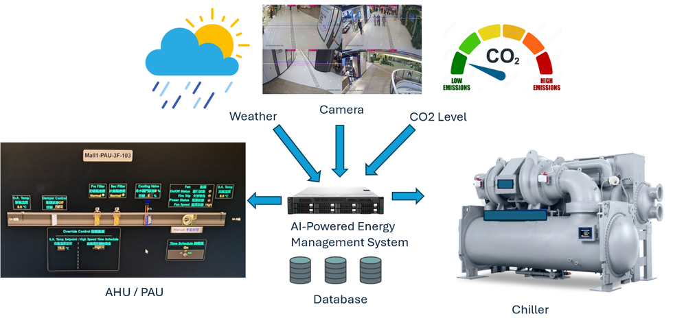 Fusioning weather, CO2 level, head count history to calculate a predicted cooling load for building / shopping mall / hospital.